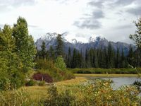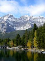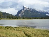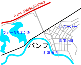 町を出る際、HighWayの手前を左に折れて、ヴァーミリオン湖に寄ってみる。観光客は少なく、バンフのシンボル「ランドル山」を背景に静かな湖である。