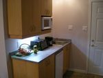 キッチンには冷蔵庫、電子レンジ、コーヒーメーカー、トースター、食器などがあり便利だが、レンジは無く本格的料理は出来ない。