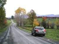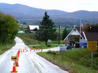 FrelighsburgからAbercornへ向かう道はアメリカとの国境線に沿う。途中道を間違って国境検問所(右の小屋)に迷い込んだ。小屋から向こうはバーモント州。ご覧の通りコーンが置いてあるだけで、鉄砲を持った兵士もいない。テロ対策で神経質なアメリカだが、この田舎町ではおおらかなもの。