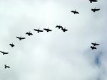 カナダには無数の湖沼があり、鴨が多い。中には100羽を越えるカギ型編隊もあり、雄大。