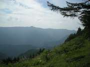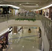 館内は巨大で各店のディスプレーも垢抜けている。まるで外国のモールのようで、家内は夏服処分セールに興奮。外に出ると目の前に山が迫っていた。
