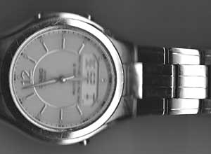 昔ながらの大型の専用機の多くはCCD方式と言われ、少々ガラス面から浮いていているものでも綺麗に撮れる(下段の黒白の写真は腕時計をガラスの上に置いてそのままスキャンしたもの)。