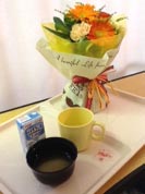 手術+入院してから既に1週間だが、写真は今日の朝食。昼も夜もまだ重湯150g+身のない汁物+ヨーグルト類のみ。