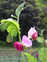 帰りは、カニ山からほたるの里を経て自転車まで戻る。この辺りは自然が良く残っているのに人が少ない楽園。昔ながらの柴垣に囲まれた農家もあり畑のキヌサヤの花が綺麗。