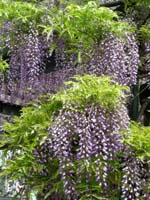 樹齢500年の大木を筆頭に10本程度のフジの株がある。但し、房は短くスダレをかき分けて・・・と言う訳には行かないのが残念。
