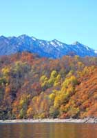 奥只見に紅葉を見に行った。大陸から高気圧が張りだすと雨模様と言う裏日本のため、紅葉シーズンには意外と好天が少ない。何日も前から天気予報を見て狙いすました一矢が見事に命中。雲一つない天気の中、紅葉を堪能した。山は荒沢岳(1,969m)で、2日前に初冠雪があった。
