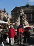 ドイツ、チェコ料理はすごいボリウムの肉とジャガイモ攻勢で、体重増加が気になり始め、昼食はりんごダイエットに切り替えた。後日、スーパーでもりんごを買ったりしたが、スーパーのは日本と同じくかじると粉っぽい。ここに限らず、市場や高速道路のPで農家が直売しているりんごはカリっとしていて、香りも強い。広場から見上げる聖ペトロ教会は天空を貫くの例えを実感するものであった。