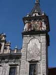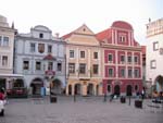 チェコ特有の装飾された家が建ち並ぶ。駐車メータ1時間20コルナ。