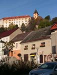 城は山の上だが、町の方に大駐車場がある(50コルナ)。城へは歩いて15分。