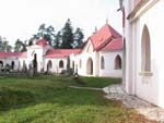 田舎道を走っていると畑のど真ん中に突然町が現れる。前面に装飾壁のあるチェコ特有の建物が、数十軒かたまっている(実際に人が住んでいるらしい)が、特に店などもなく町としての体をなしていない。マルアイも鍵が掛かっている。
