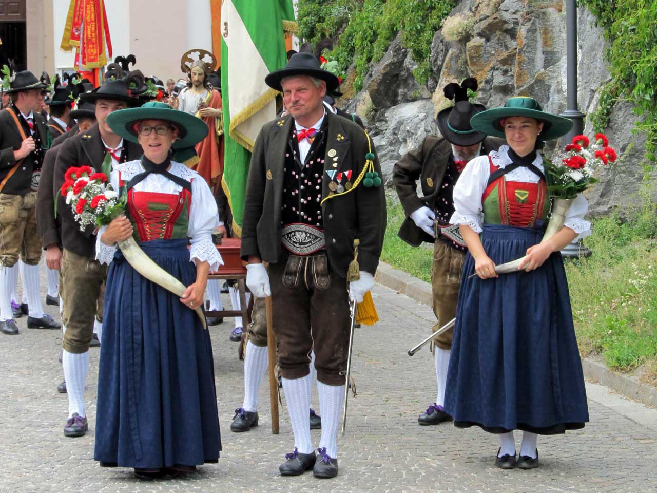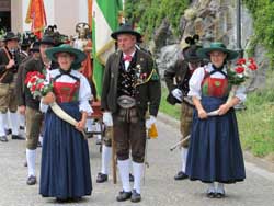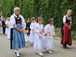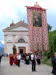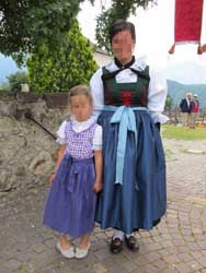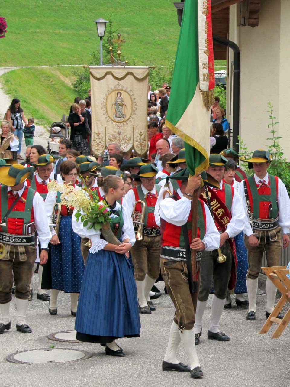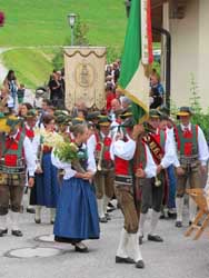 あまり期待していない村であったが、何やらチロルの民族衣装姿の村人が群がっている。教会の前に行くと聖像を担いで行列が始まったばかり。