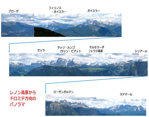 本来、ガイスラーのギザギザ峰が真横から見え、シウジ高原も良く見えるはず。