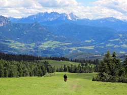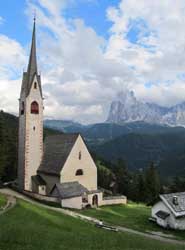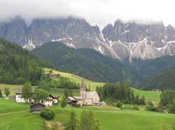 サンマッダレーナを上から見おろす リフト駅から牧草地を見上げたところ