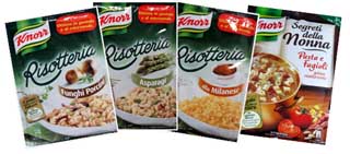 イタリアのご当地クノールで、ポルチーニ茸のリゾットがお薦め。後で自宅で食べてみたが結構おいしくボリュームもある。