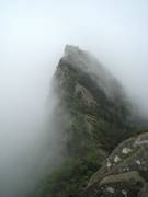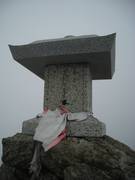 戻り道で岩にしがみつきながら天狗岳の祠を写真に収めた(頂上に休む平地は無い)。