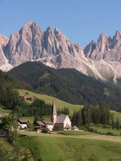 この村は、かの超人クライマー、ラインホルト・メスナーの生まれ故郷であり、一時期この教会の牧師館に住んでいたこともある。