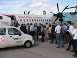 ウィーン空港でチロリアン航空のインスブルック行きへ乗り継ぐが、悪い予感が当たり、機種は先日 高知空港に胴体着陸したボンバルディアDHC8-400型! 神に無事を祈って搭乗。でも殆どがチロルの村々を間近に見られる素晴らしい航路。約1時間で無事着陸。 |