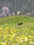 ここから約40分ほどでGampen Alm Hutteに到着。牛たちが草原に寝そべり、花も満開。
