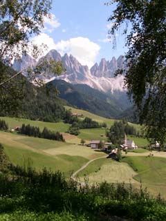 この村から見るガイスラー山塊の景色が今回の旅行の最大の目的で、カレンダーなどにも多く採用されている。