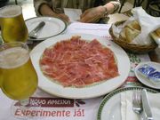 帰国の目処が立ったことを祝って 、イベリコ豚の生ハム100g(14.4euro)を奮発して、乾杯。