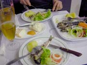 天気は良く、汗ばむ。市場の近くを歩いていると魚を焼く良いにおいが・・・ついふらふらとレストランに入りイワシの塩焼きでビールを飲ん だ。サイコー。
