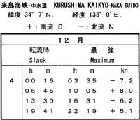 ただし、潮汐表によると当日の来島海峡(中水道)の潮流は、右表のとおりである。